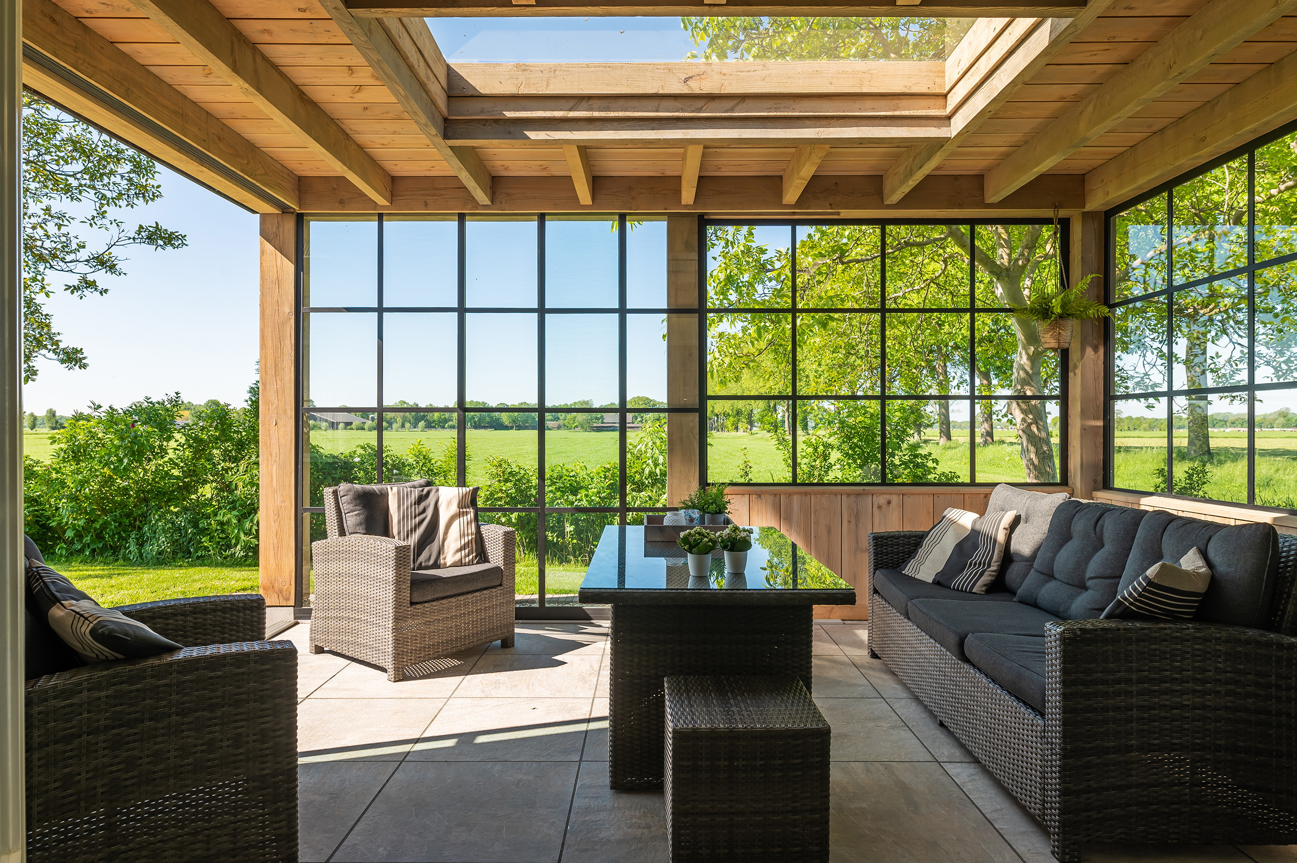 Deze woning is voorzien van een fraaie veranda. Een ultieme manier om de living te laten aansluiten op het buitenleven. Door de ruime glaspartijen en lichtstraat in het dak is er altijd veel daglicht in de veranda en in het woonhuis. Door middel van de soepel werkende schuifwanden geniet u ook op een frisse avond langer van het buiten zitten.
